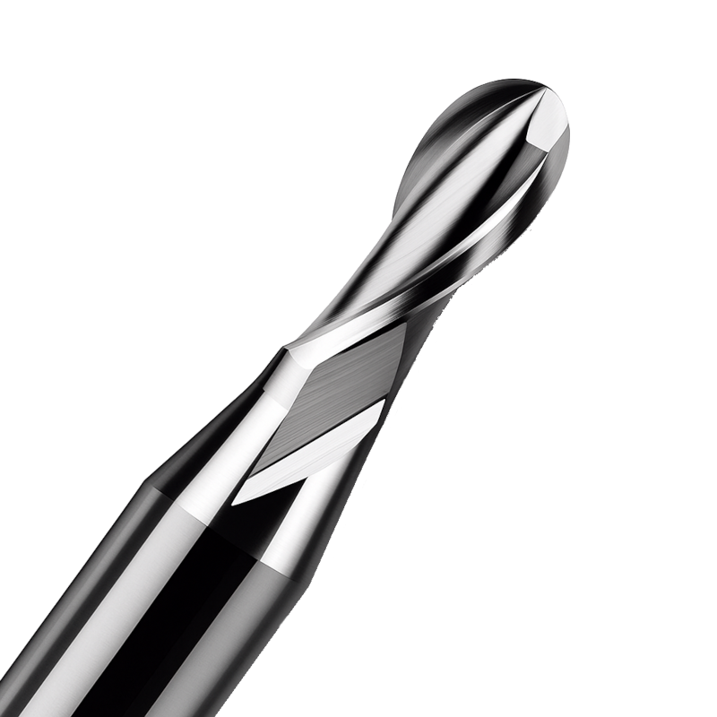 Fresa a Punta Sferica e Doppia Elica: finiture lisce e dettagli precisi su alluminio e metalli teneri.